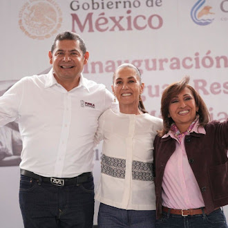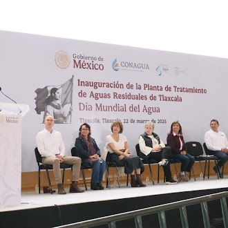 En el marco del #DíaMundialDelAgua 🌎💧, la Presidenta Claudia Sheinbaum inaugura en compañía de Lorena Cuellar y Alejandro Armenta, gobernadores de Tlaxcala y Puebla respectivamente, una Planta de Tratamiento de Aguas Residuales en Tlaxcala.