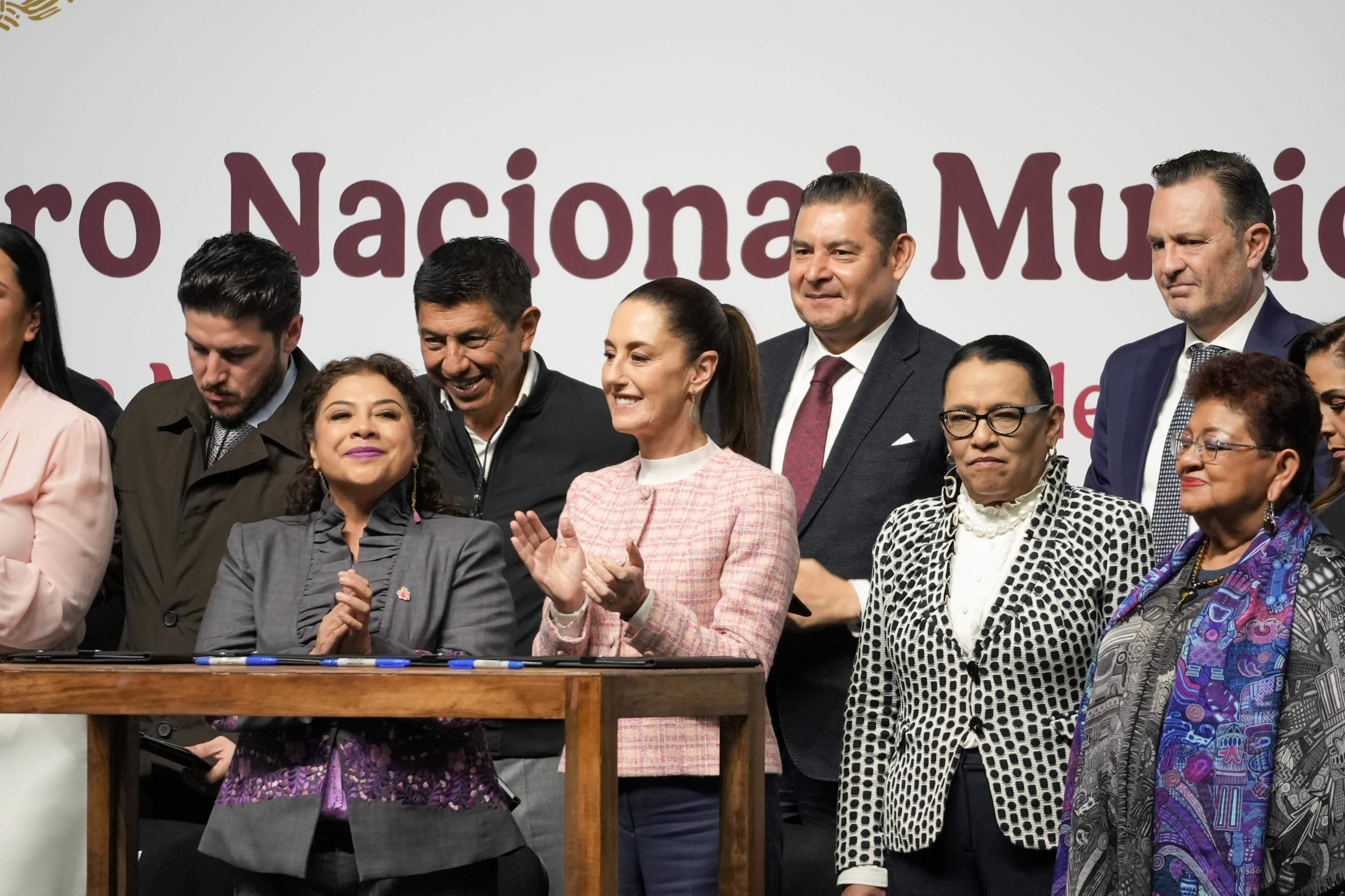 En su mensaje, la presidenta Claudia Sheinbaum agradeció el trabajo de las y los gobernadores y alcaldes: “Si estamos bien es gracias a los presidentes municipales, a los gobernadores y a un gobierno que tiene la convicción de servir a su pueblo”.