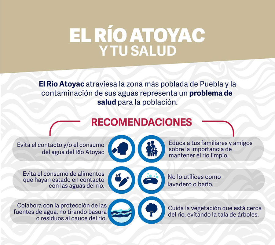 | Si entraste en contacto con el río y presentas dolor de cabeza, fiebre repentina, náuseas, etc., ¡acude a tu unidad de salud más cercana! |